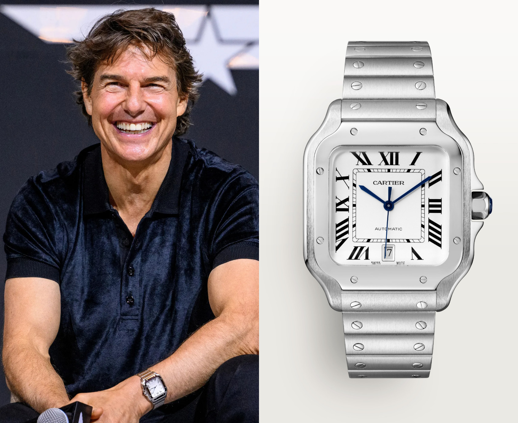One of Hollywood's most iconic actors, Tom Cruise, has been spotted wearing a Cartier Santos on his wrist at countless red carpet events. His choice of this watch not only underscores his appreciation for craftsmanship, but also adds a touch of elegance to his signature style.